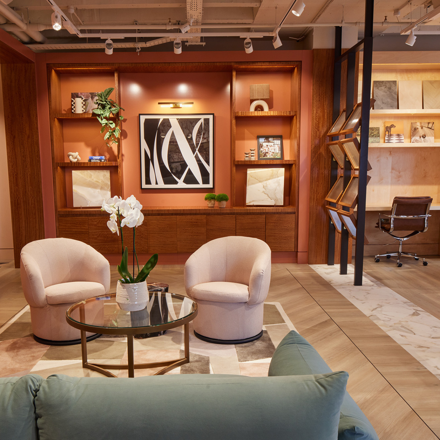 Explore our complete portfolio of wood, stone and geometric flooring designs, with large-format product boards and interactive trend moodboards. Benefit from personalised interior design advice from our showroom manager, Aris Lazdans, experiment with flooring plans on our collaboration table, and order full-size samples for delivery.